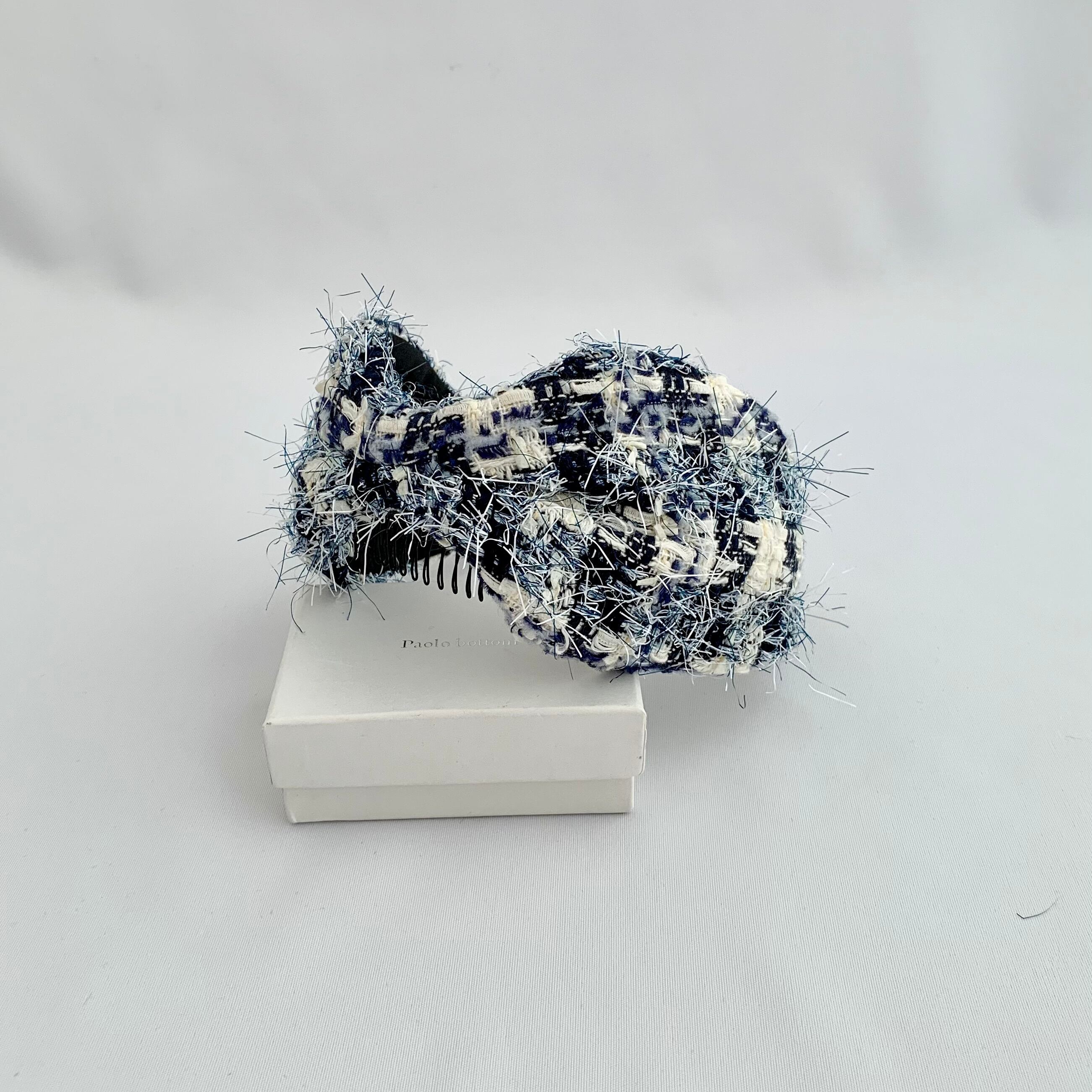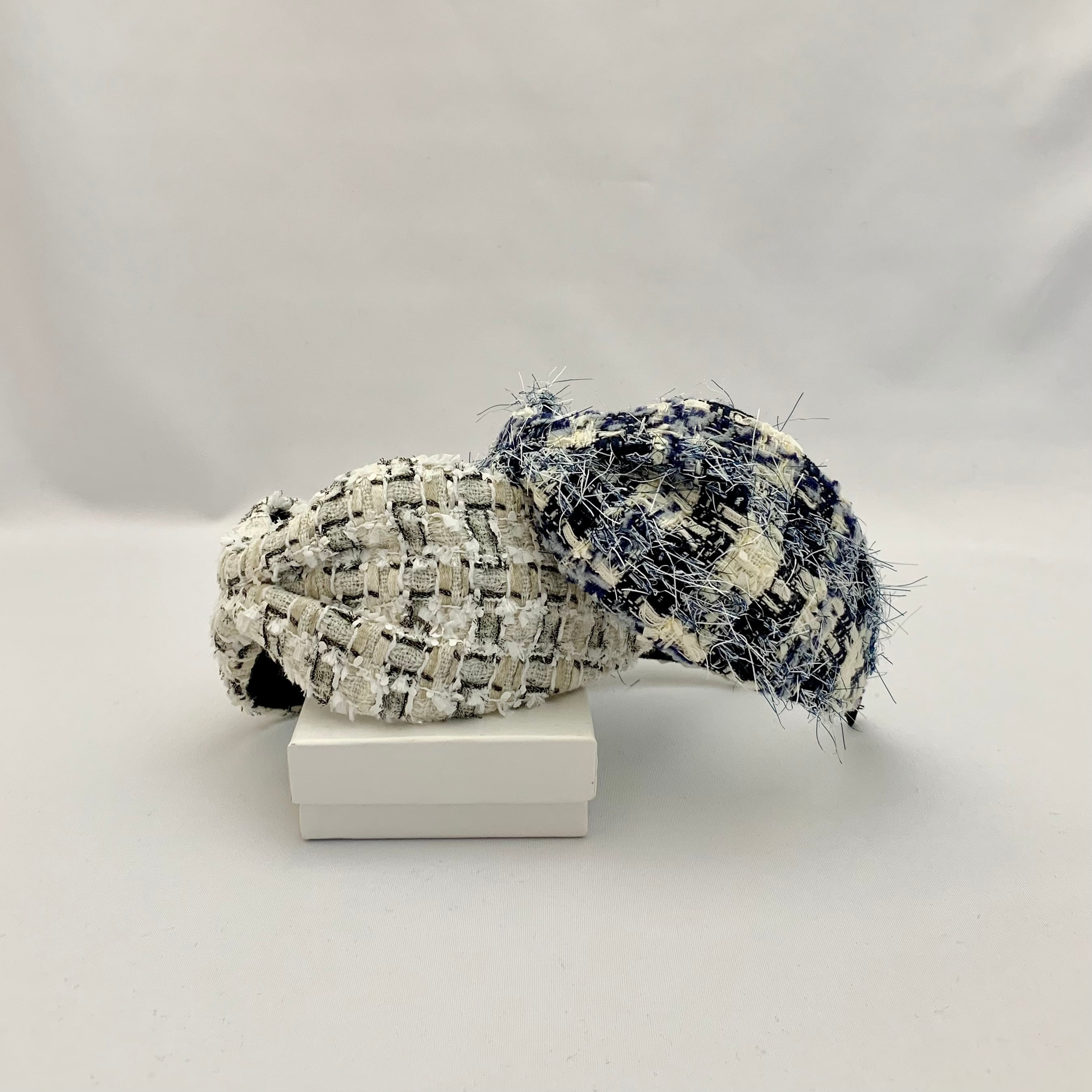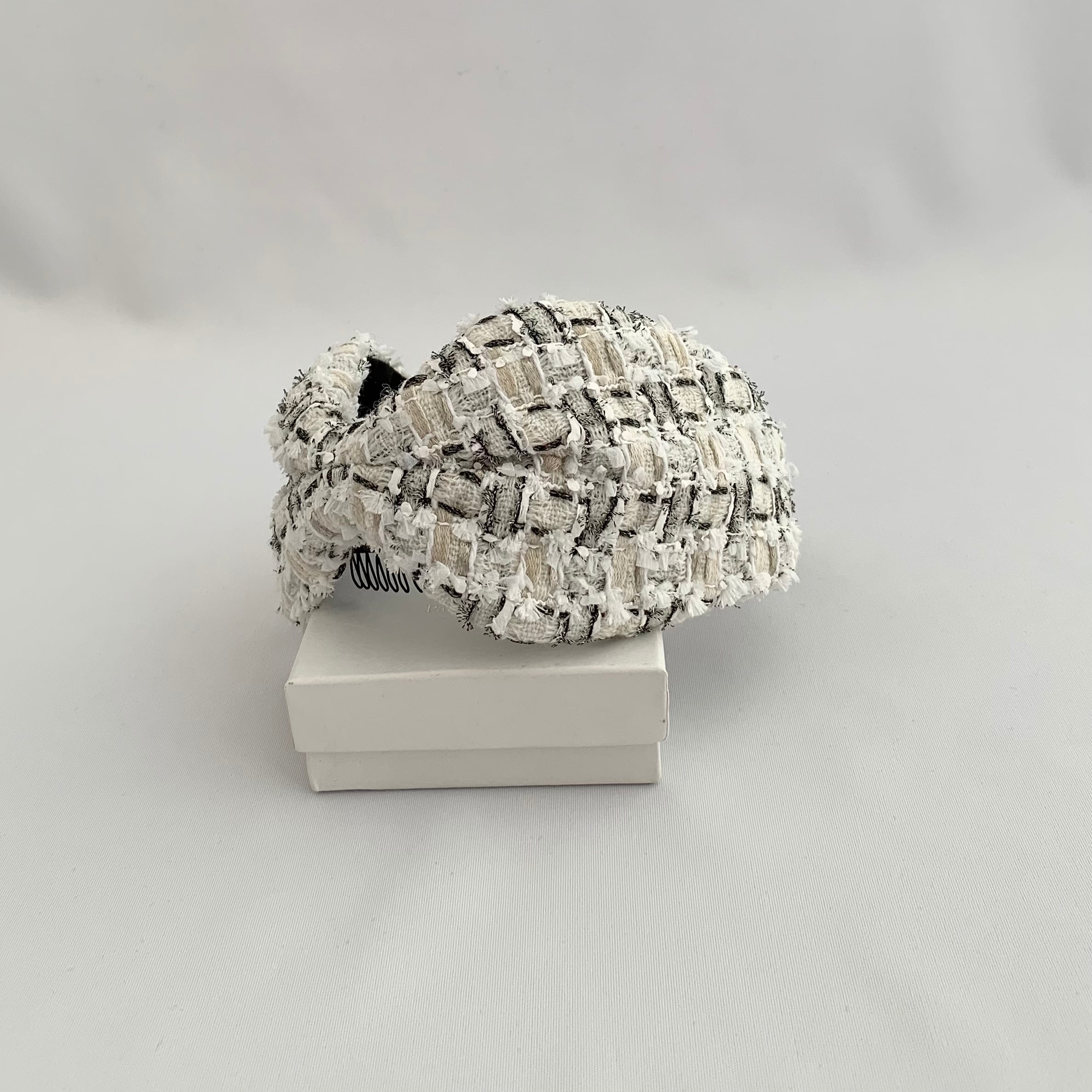 上質なリントンツイードを使用した、エレガントなカチューシャです。洗練されたデザインにリボンがアクセントとなり、特別な装いを引き立てます。柔らかな素材感で頭にフィットし、長時間の着用でも快適なつけ心地です。カジュアルからフォーマルまで、様々なスタイルに合わせることができます。